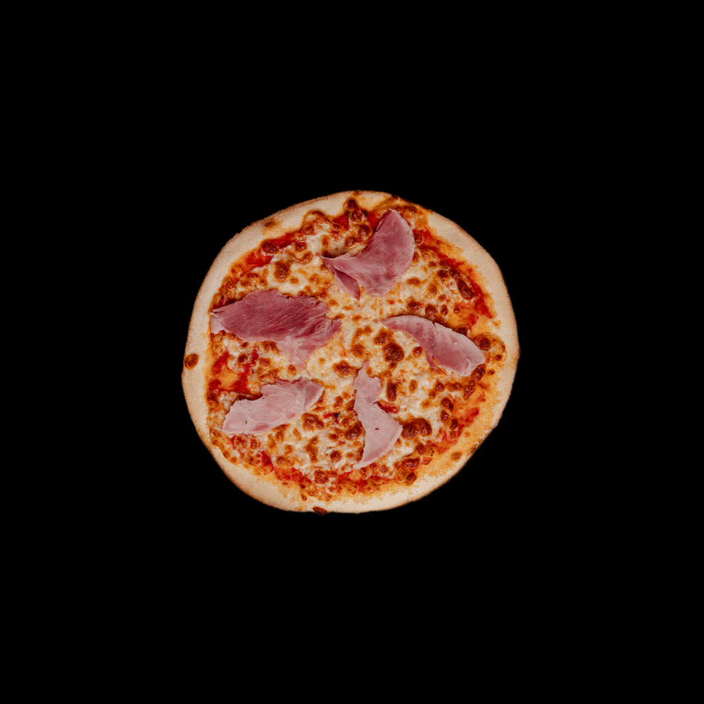 Base tomate, jambon, champignons, oeuf, mozzarella, crème fraîche